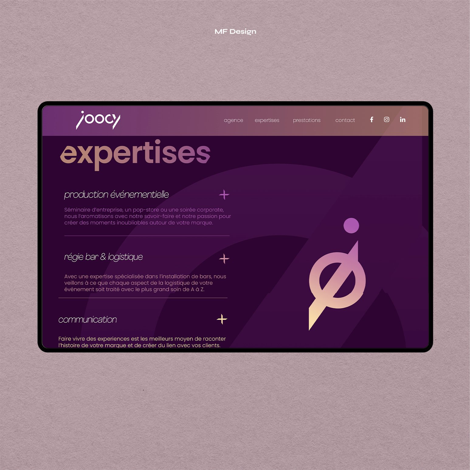 L’équipe de l’agence MF Design est ravie d’annoncer la conception du site internet pour le compte de Joocy Agency, fruit d’une collaboration étroite avec l’agence HLKL Studio.